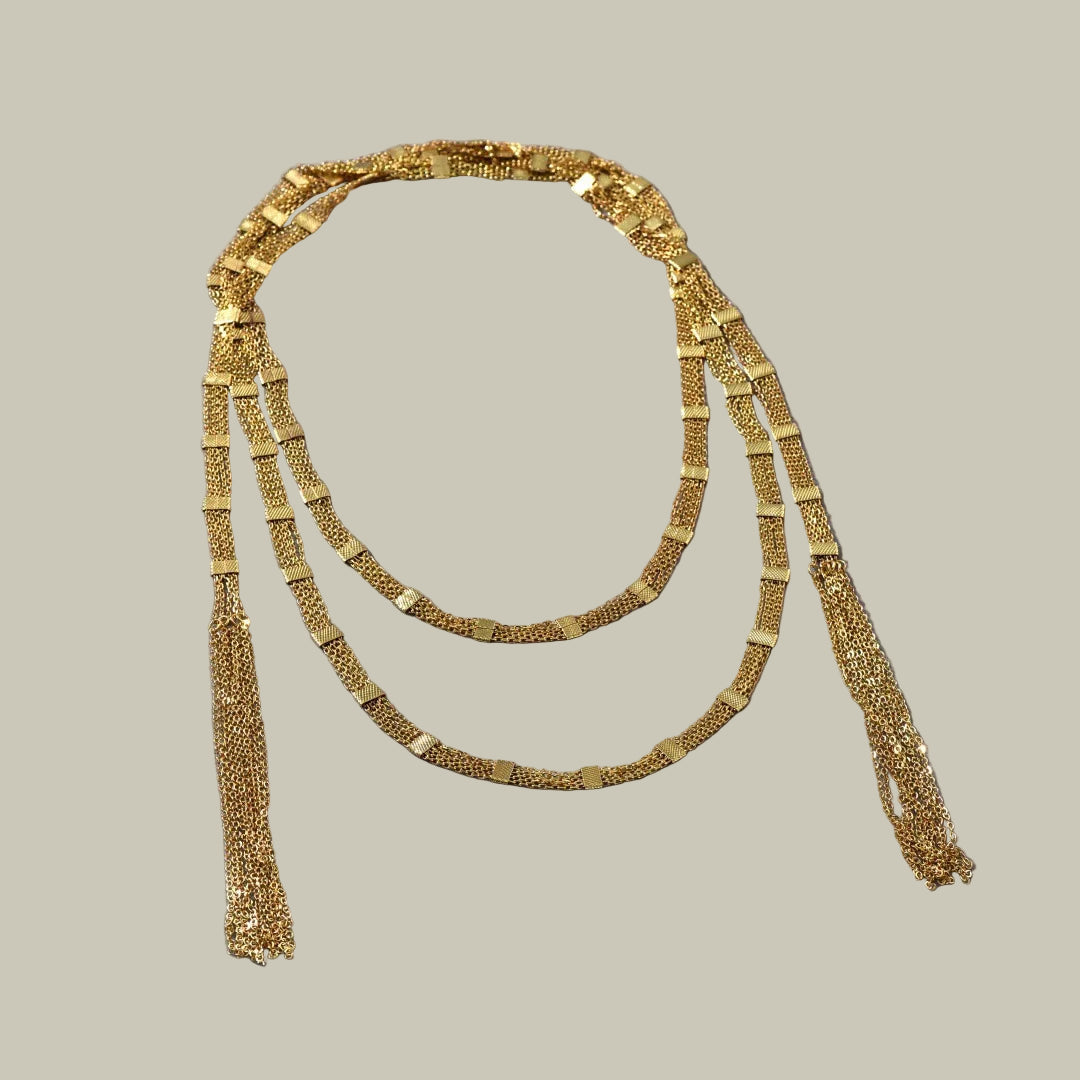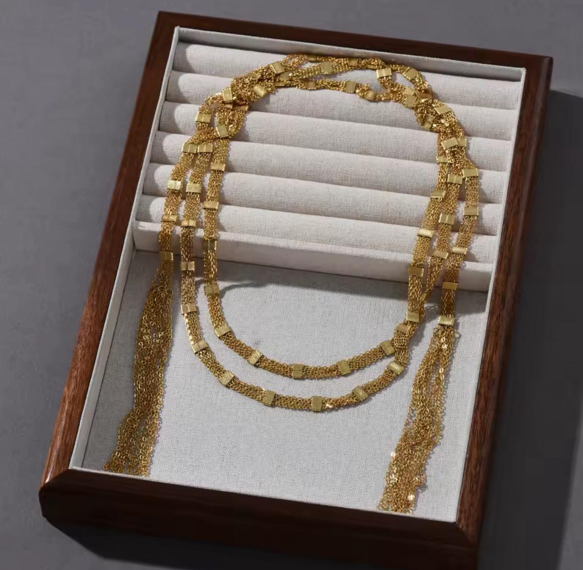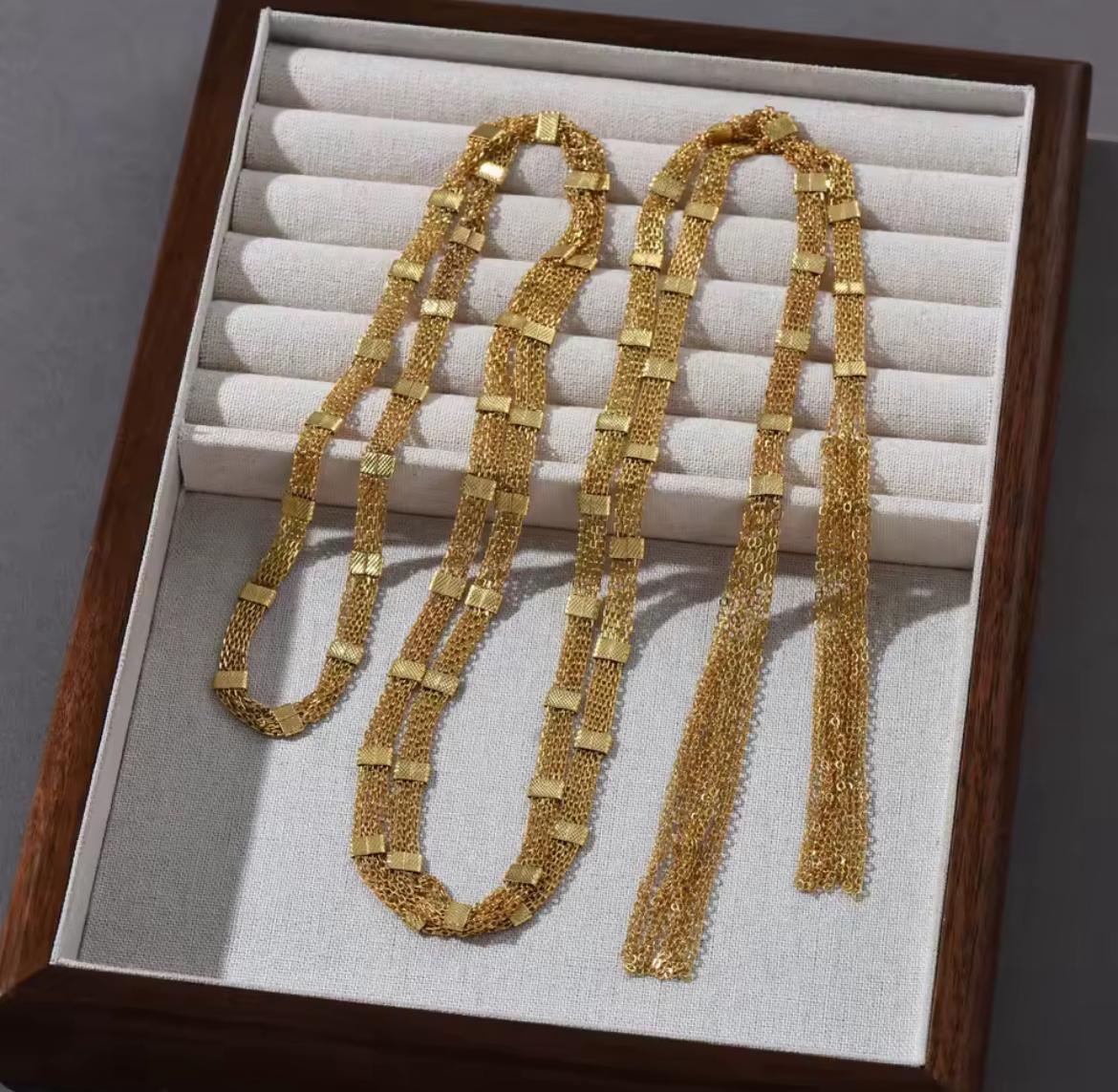 Colar Luxo Unissex com Borla Dourada e Design Empilhado
