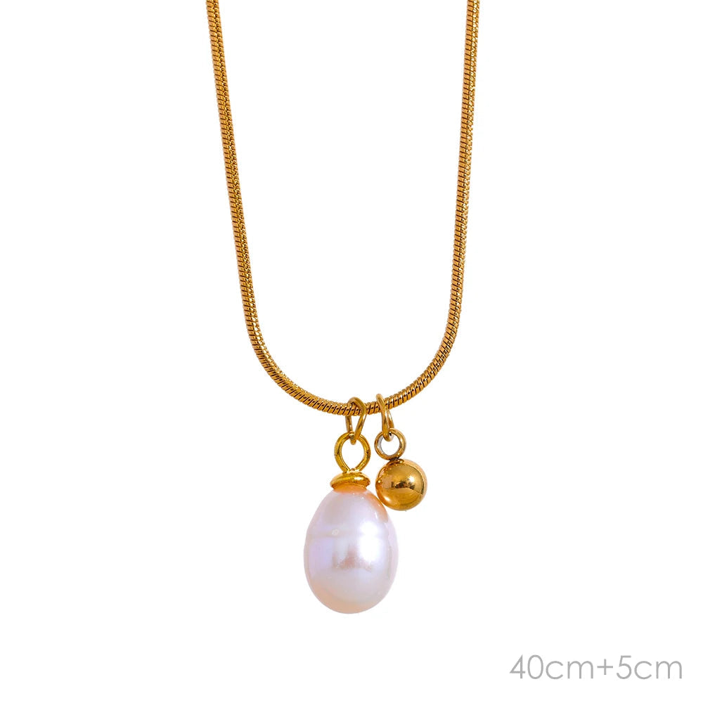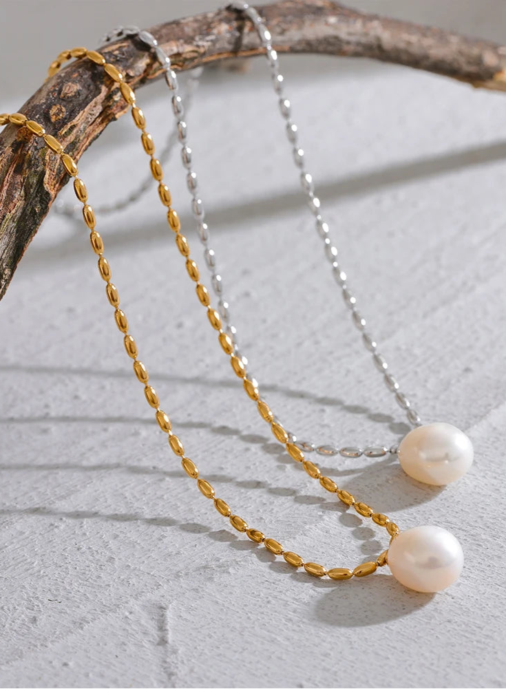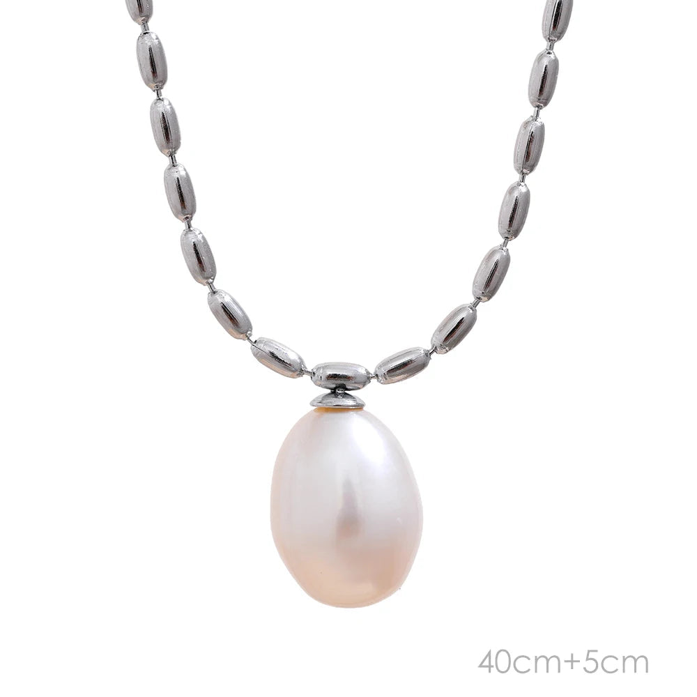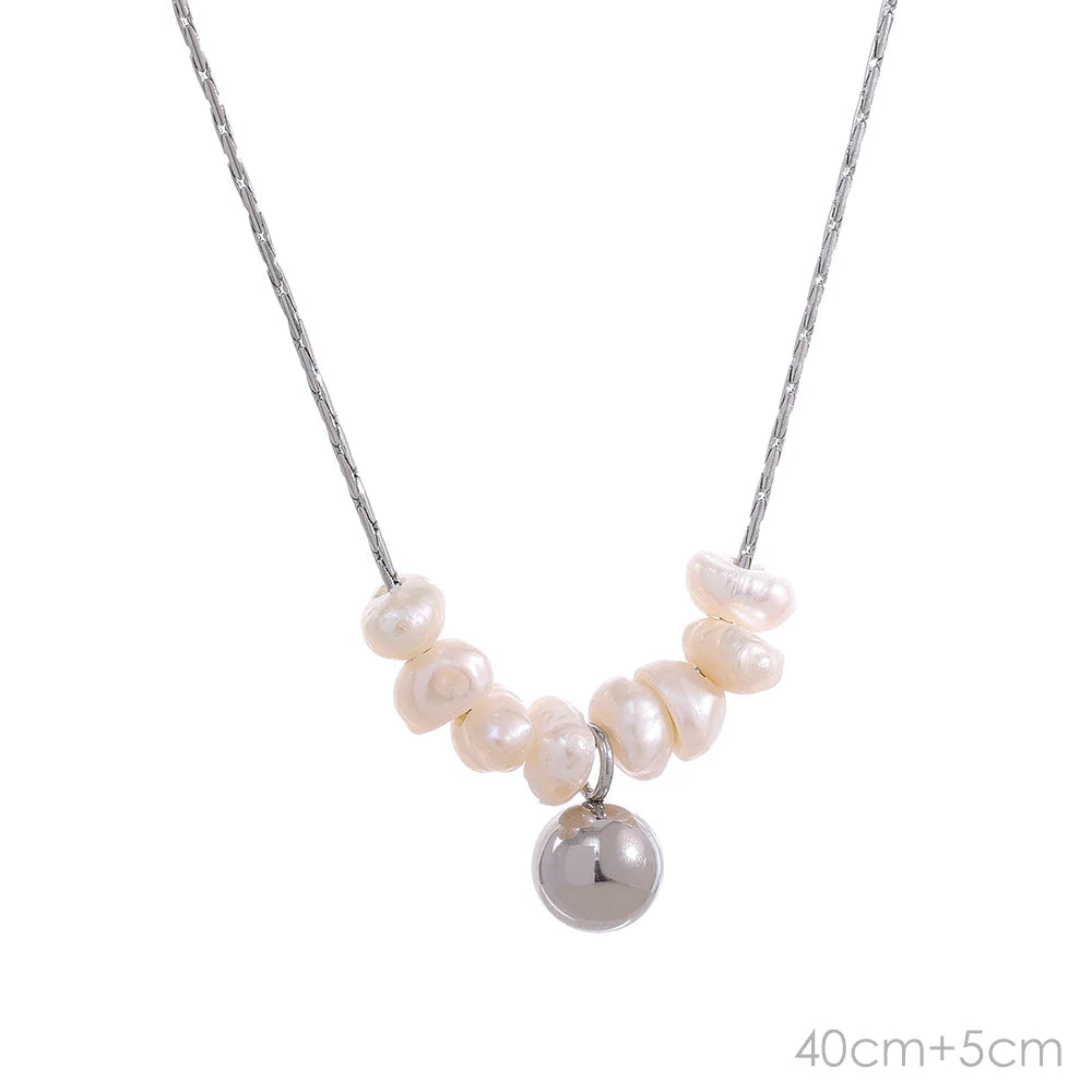Colar Minimalista de Pérolas Naturais com Corrente de Aço Inoxidável