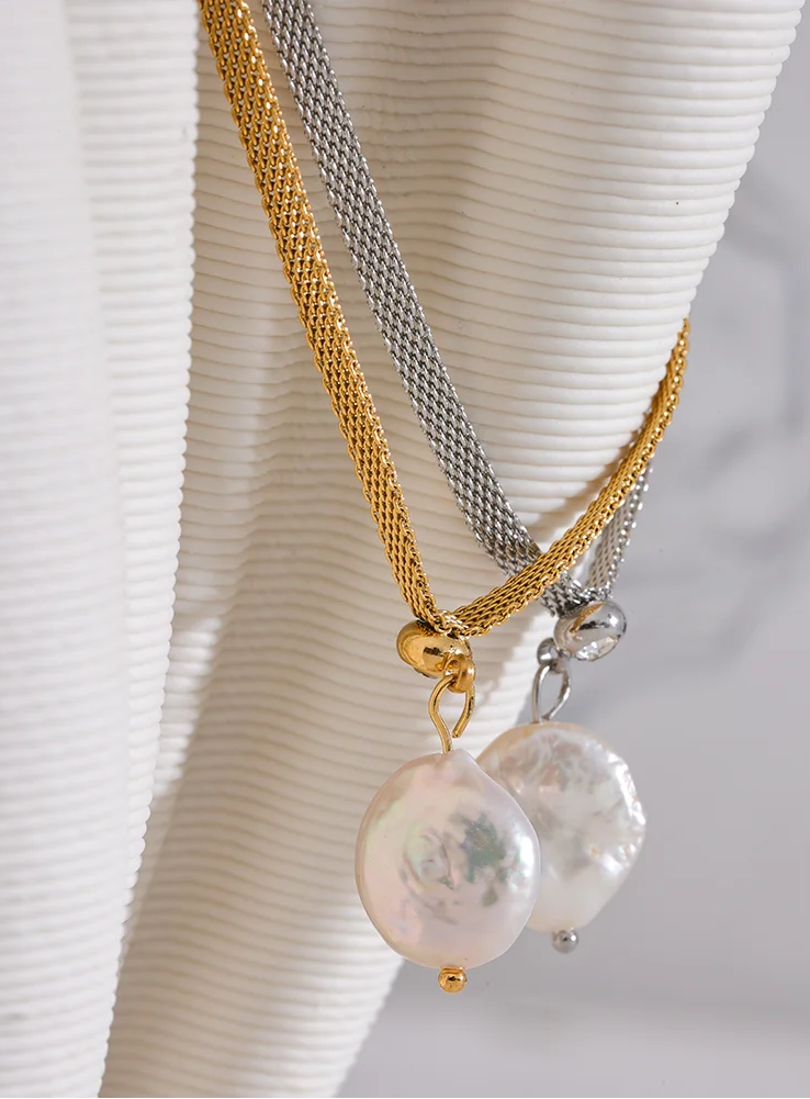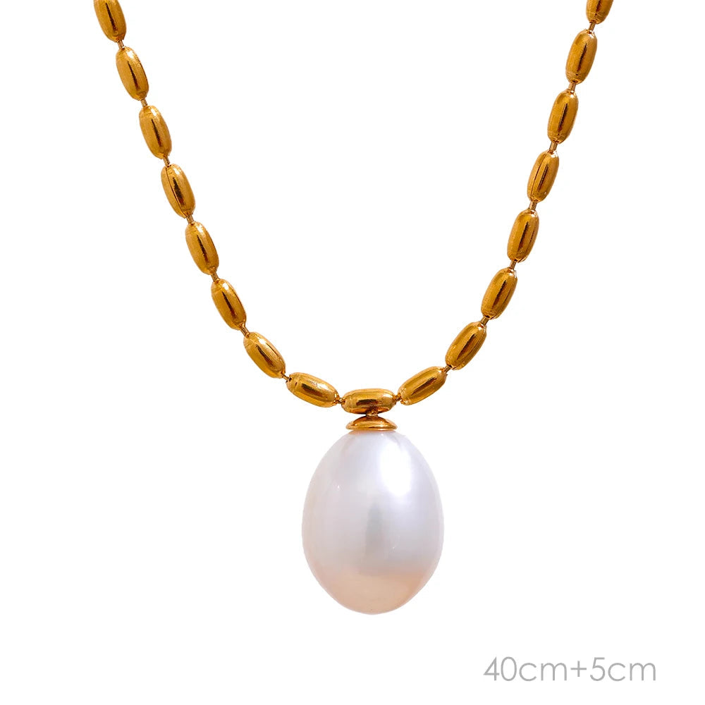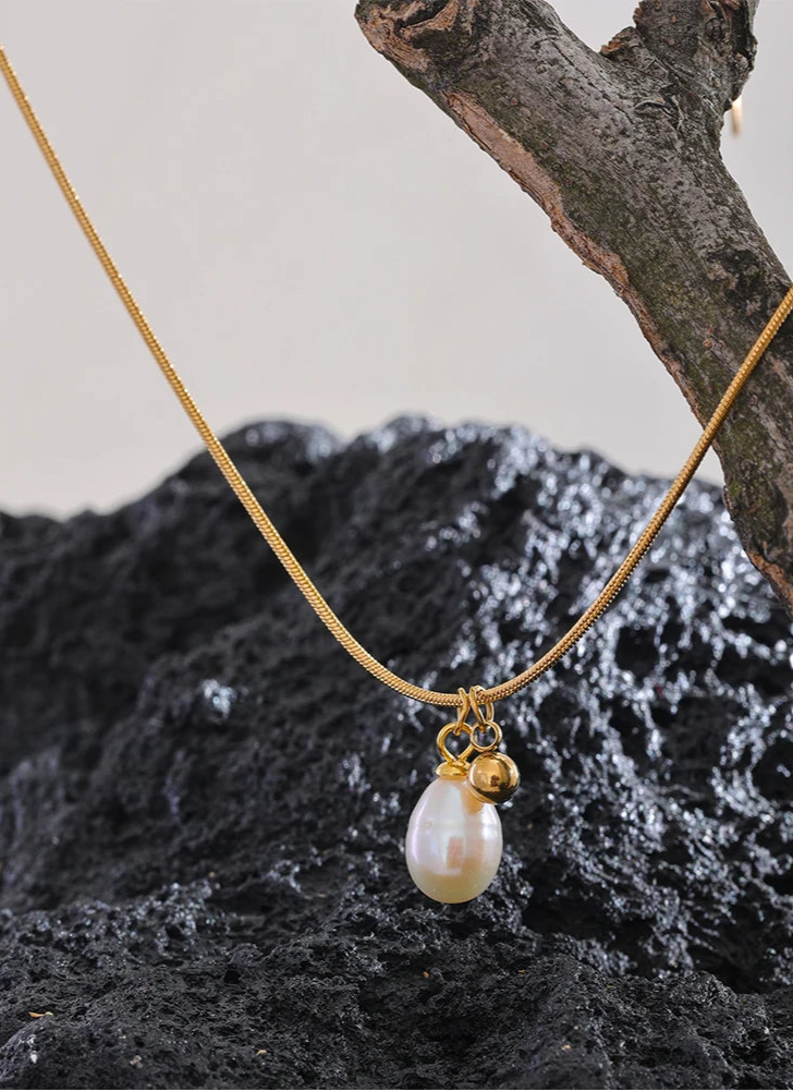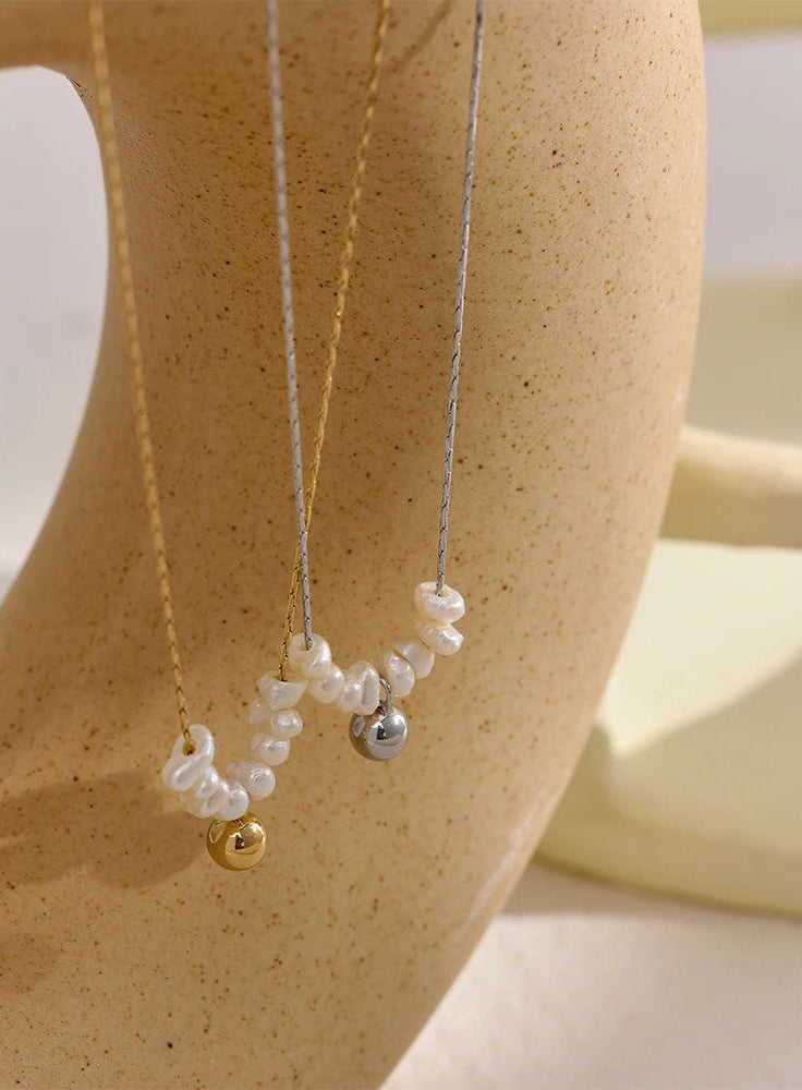 Colar Minimalista de Pérolas Naturais com Corrente de Aço Inoxidável